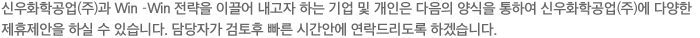 신우화학공업(주)는 제휴를 희망하는 기업 및 개인을 대상으로 아래와 같이 개인정보를 수집하고 있습니다.
